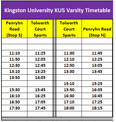 We've arranged FREE transport to and from Penrhyn Road Campus to Tolworth Sports Ground.